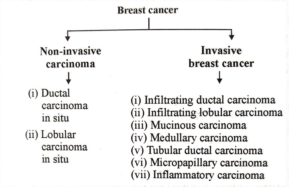 It is the malignant growth in the breast tissues commonly occur in the female breast and infrequently in the male breast.
